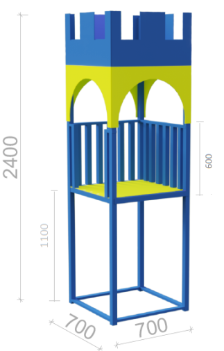 «Вежа Замок» — це яскравий ігровий елемент дитячого майданчика, виконаний у стилі казкового замку.