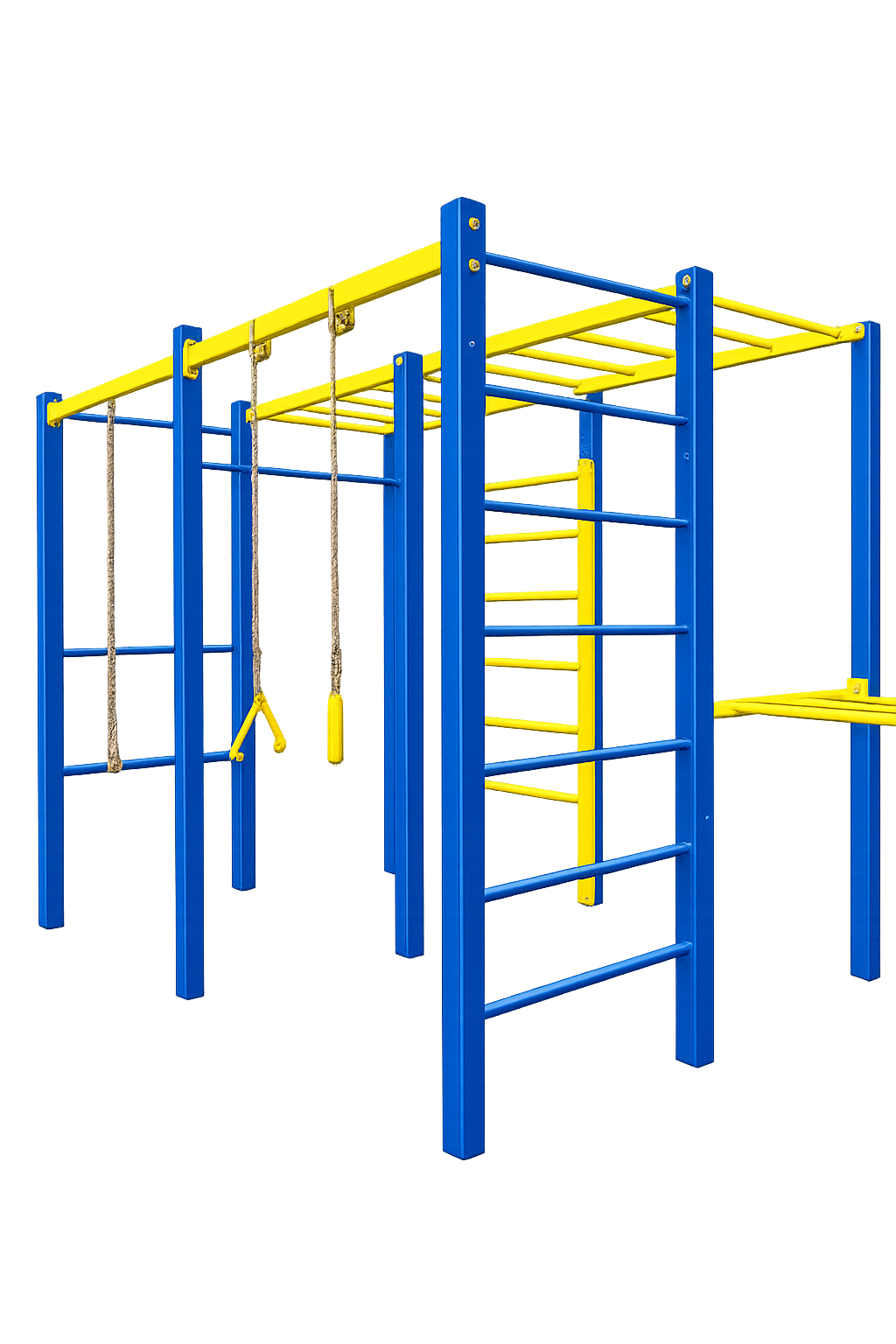 призначений для активного фізичного розвитку дітей та підлітків. Конструкція поєднує рукохід, драбини, бруси та