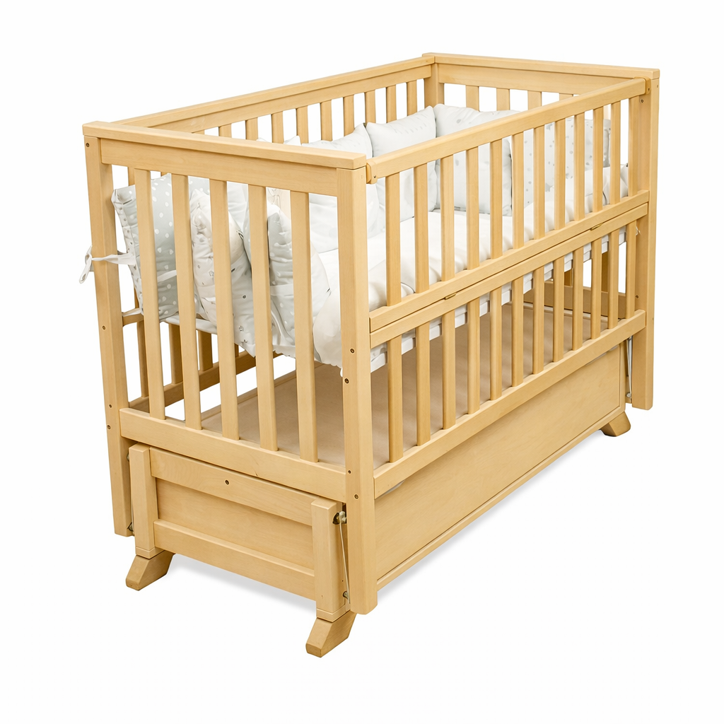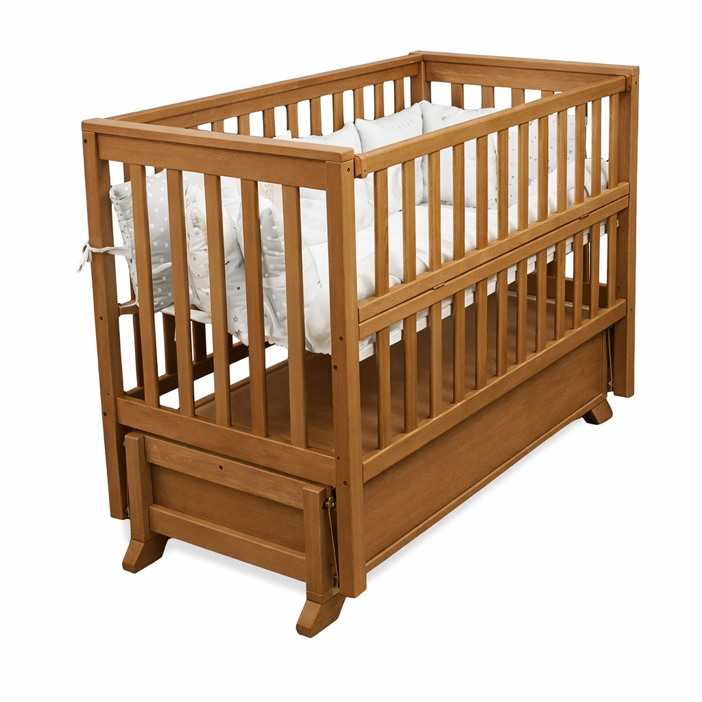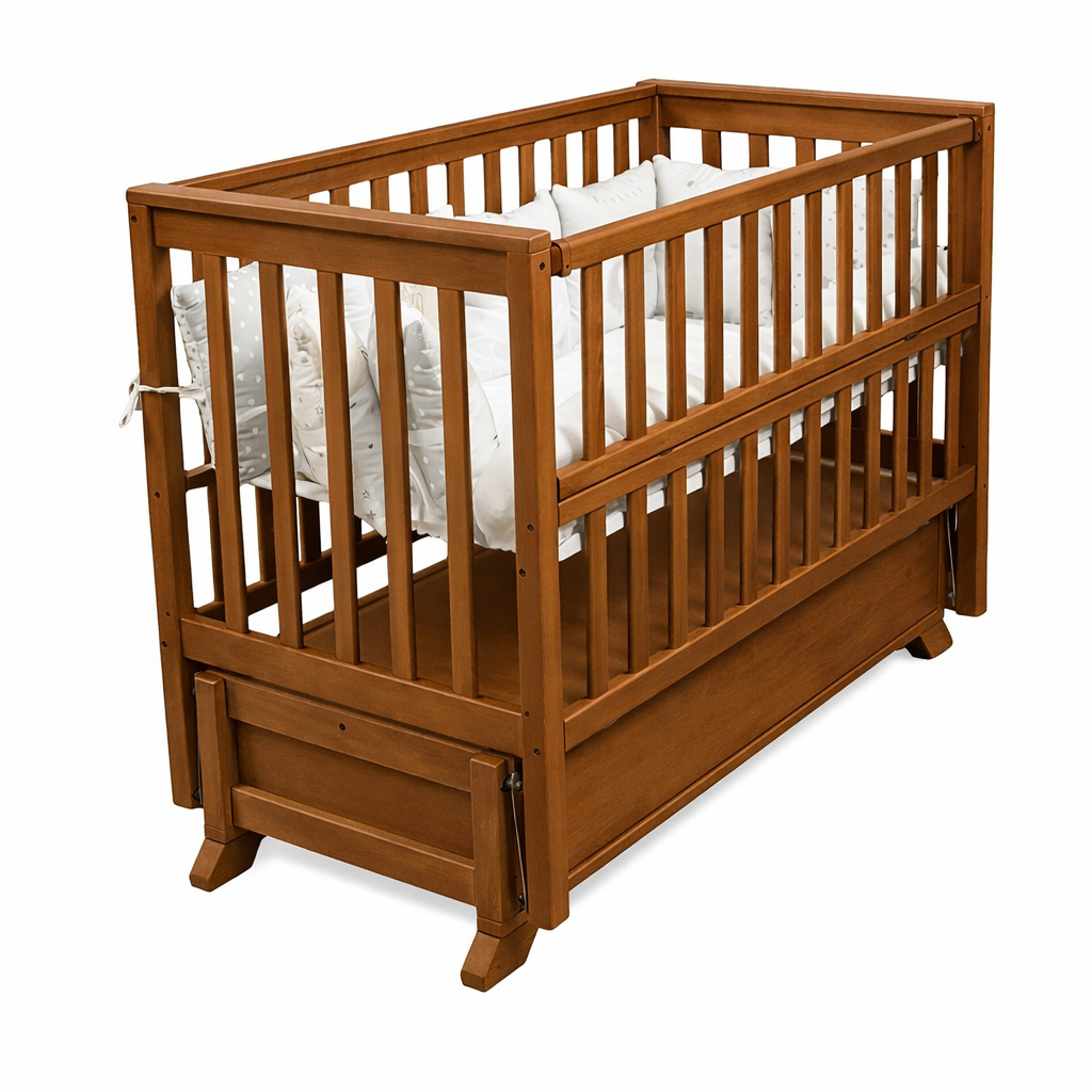 Модель виготовлена із масиву дерева бук, яка ретельно відшліфована. Модель має рухому\відкидну боковину, що спрощує мамі догляд за малечою.