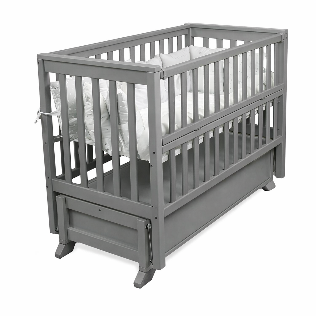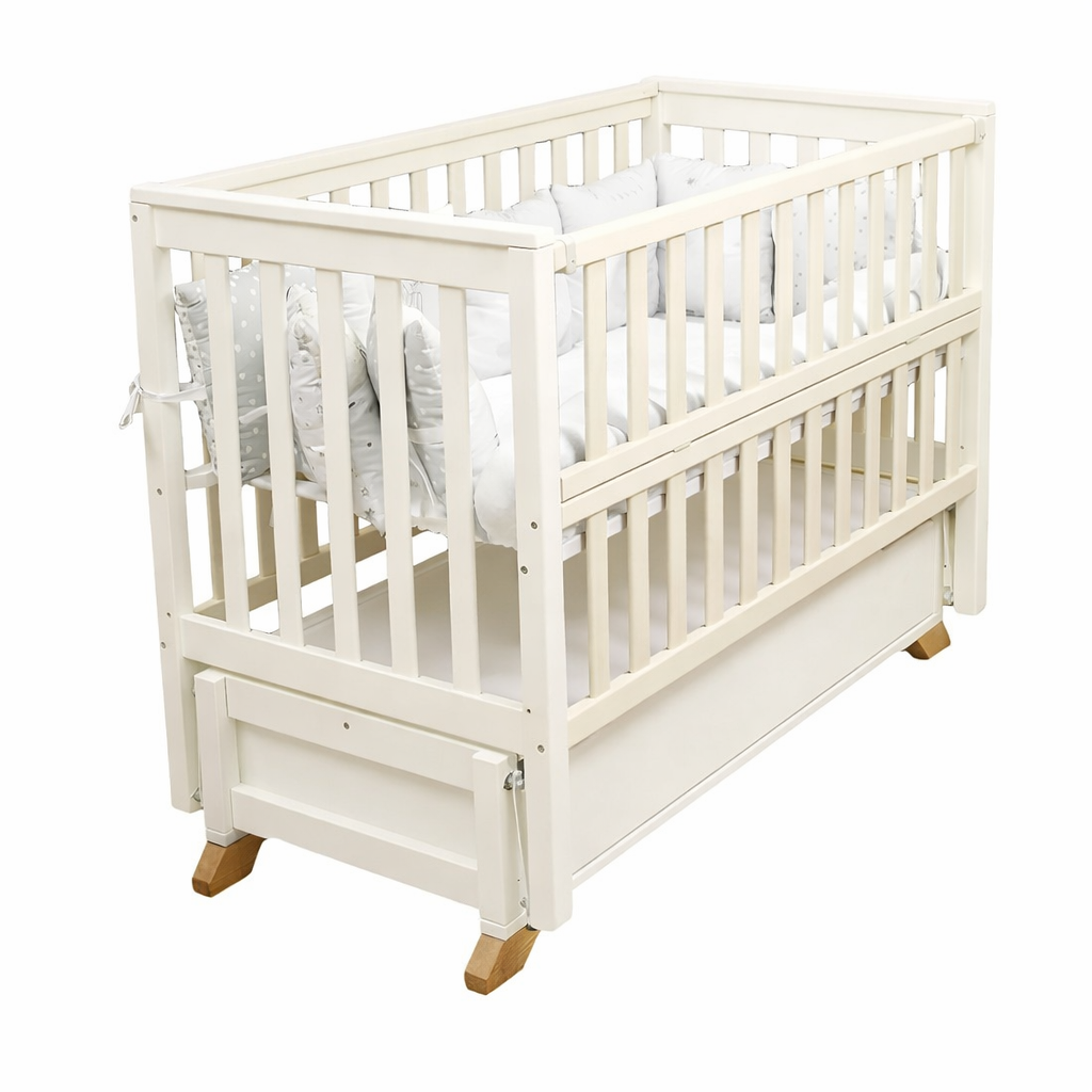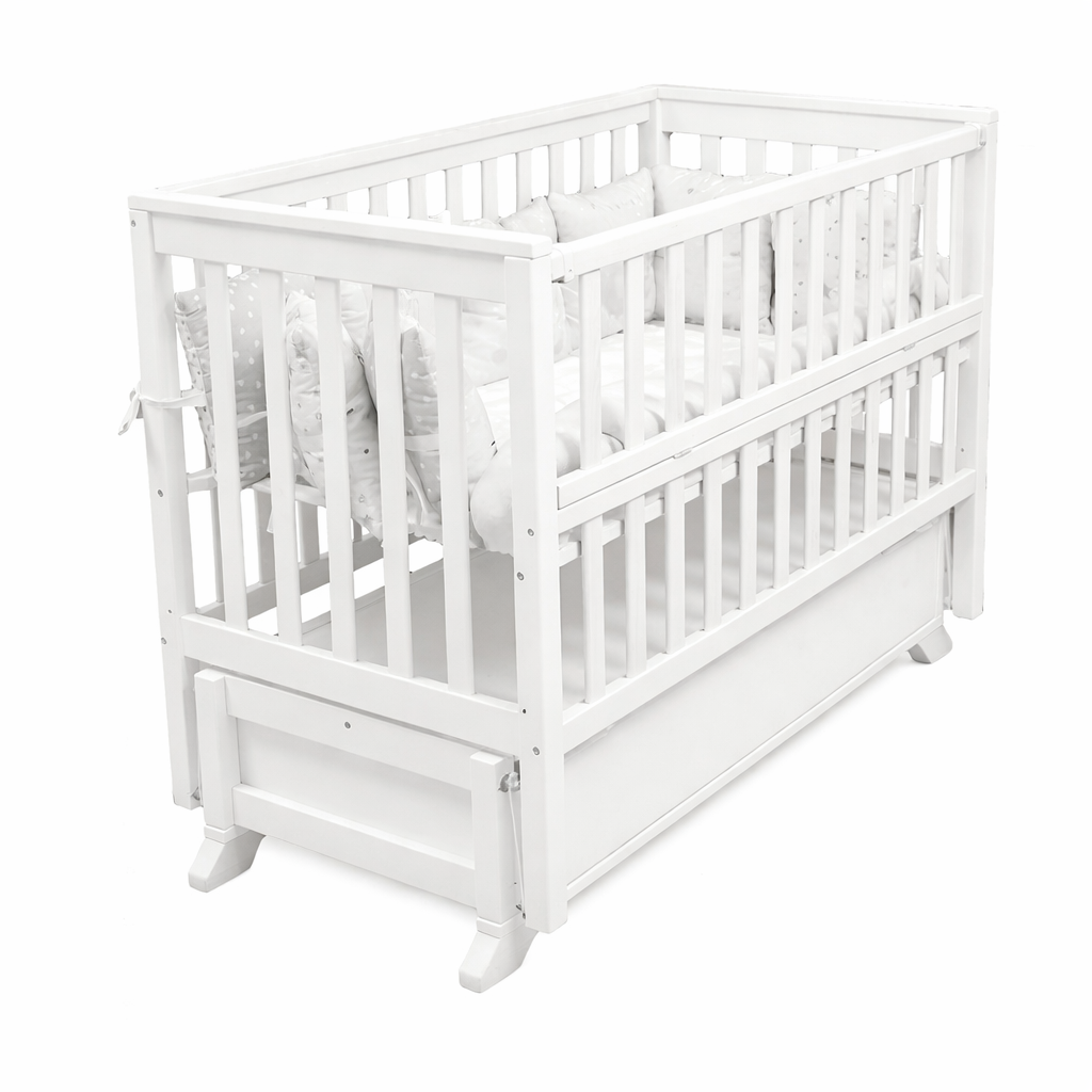 Модель виготовлена із масиву дерева бук, яка ретельно відшліфована. Модель має рухому\відкидну боковину, що спрощує мамі догляд за малечою.