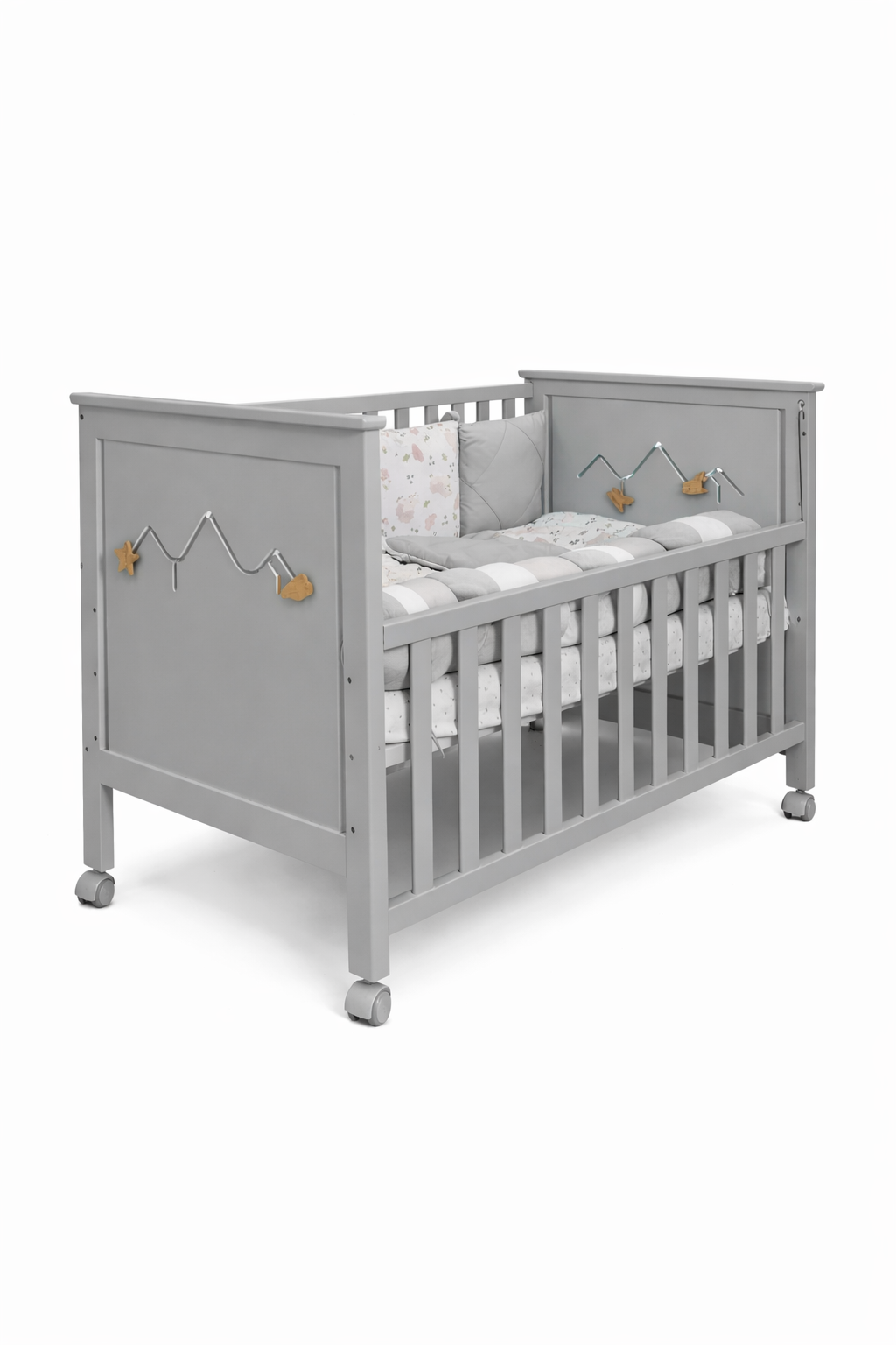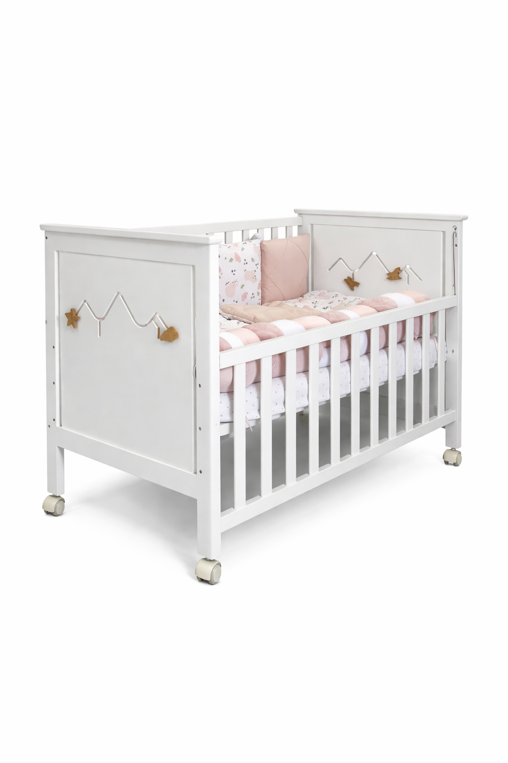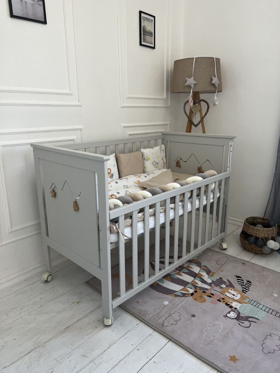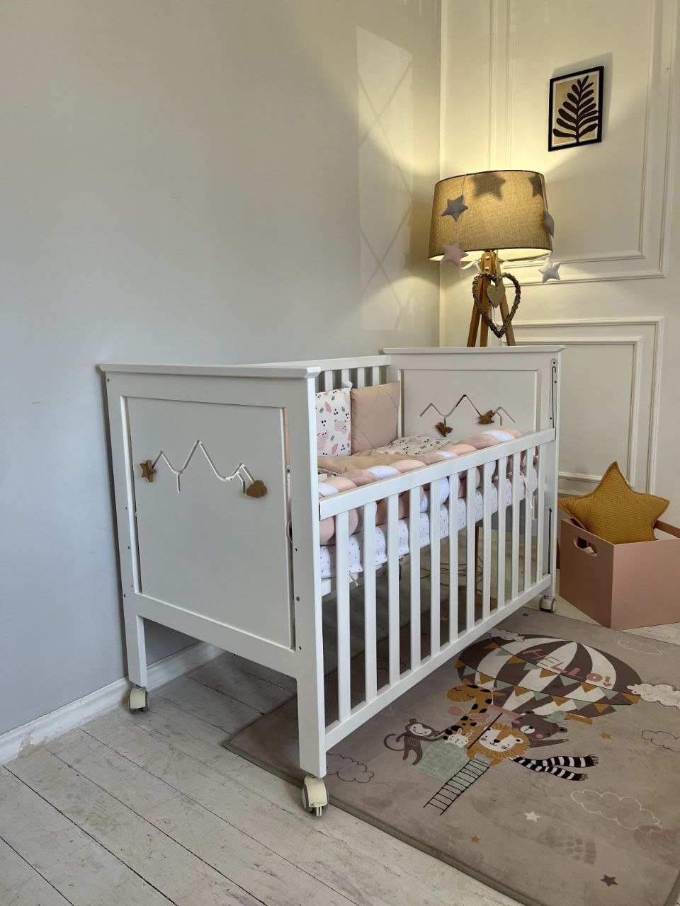Емма – оздоблена функціонуючим бізі бордом, який допоможе малюку розвиватися та з цікавістю проводити час у ліжечку.