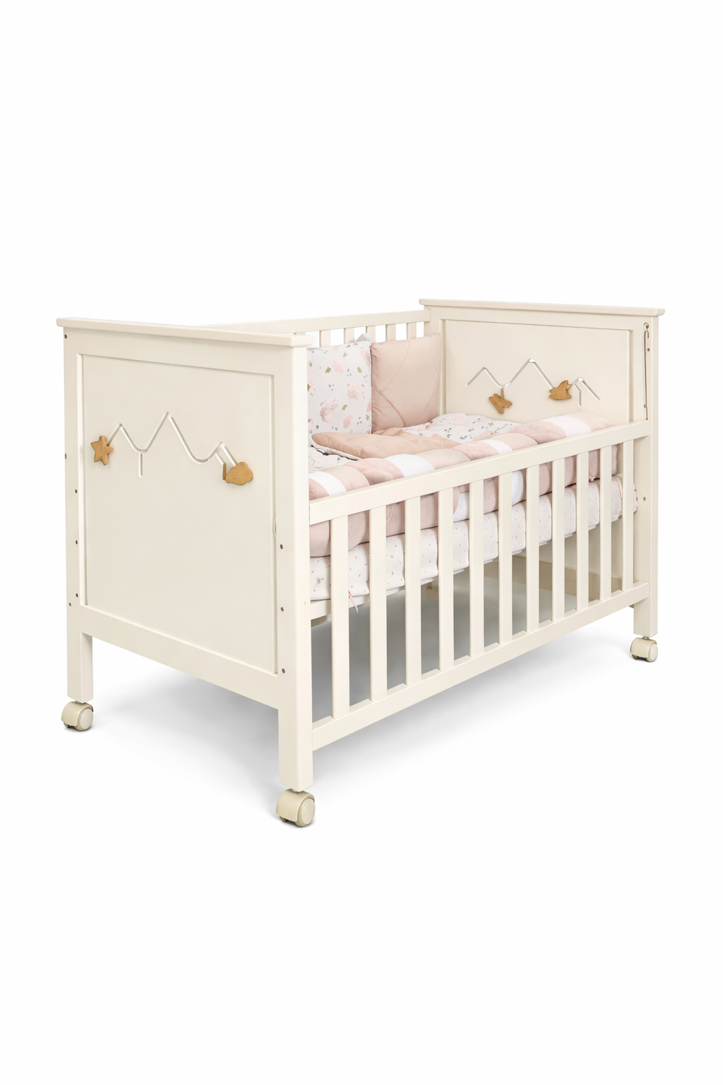 Ліжечко укомплектовано колесами, які також дадуть Вам можливість легко перемістити його в будь-яке місце Вашого дому.