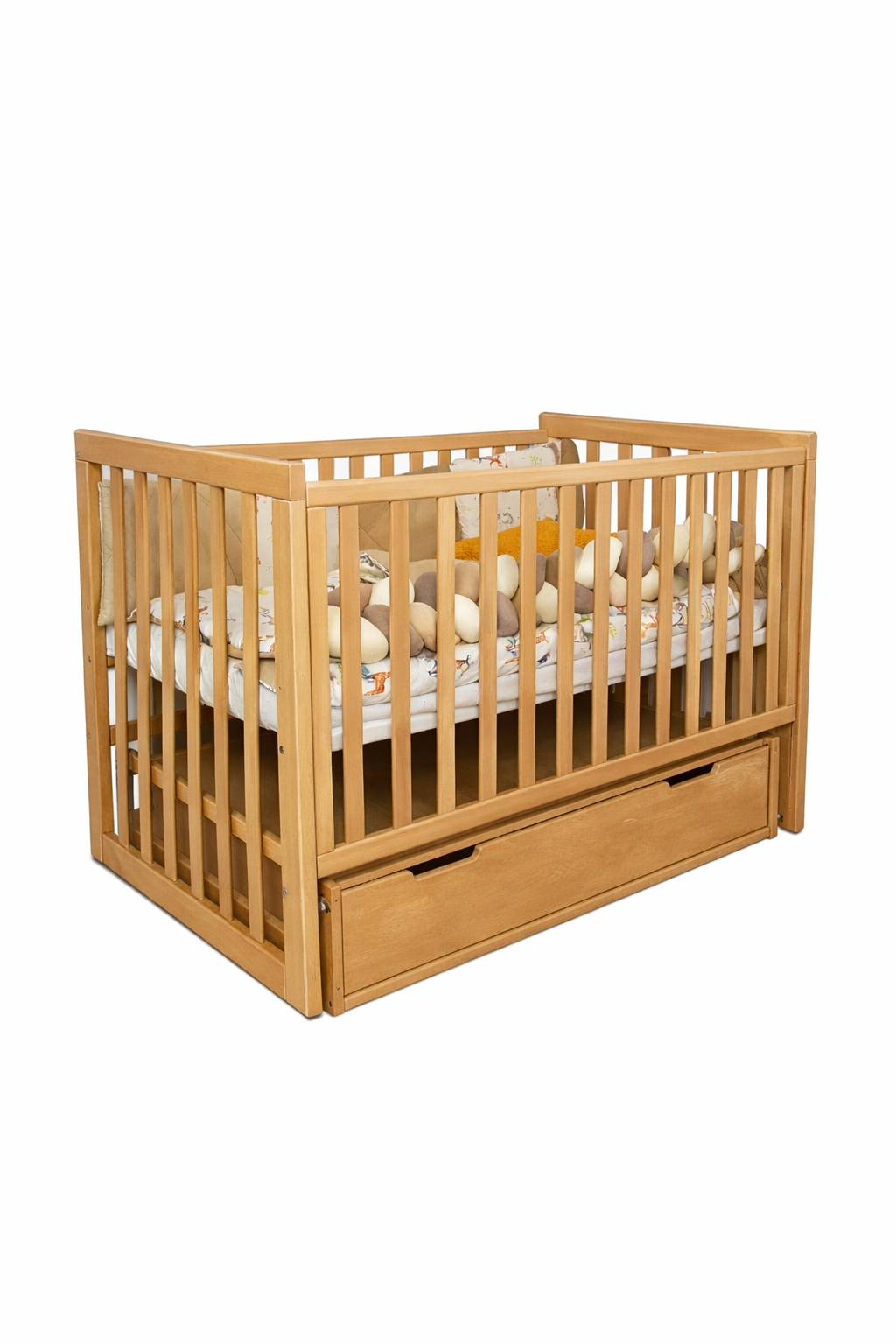 Модель виготовлена із масиву дерева бук, яка ретельно відшліфована. Модель має рухому\відкидну боковину, що спрощує мамі догляд за малечою.