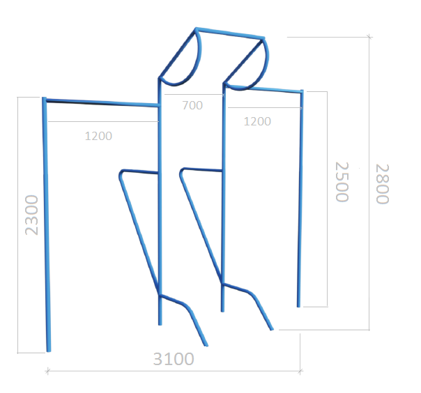 Конструкція поєднує класичний турнік та бруси, що дозволяє виконувати